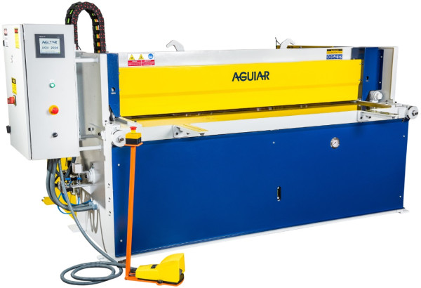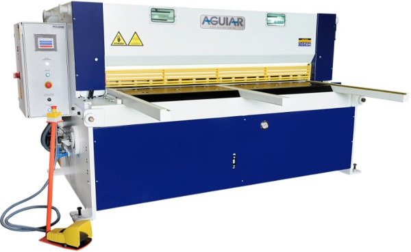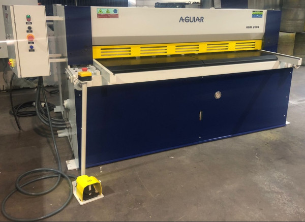 Características Técnicas: As Guilhotinas Eletromecânicas com Ângulo Fixo e Corte Prismático são maquinas industriais para corte de chapas metálicas e vários outros tipos de materiais. Fabricação 100% Nacional; Capacidade de corte em aço SAE 1010 / 1020 (R=420 N/mm²); Sistema de corte prismático com ângulo fixo; Transmissão por acoplamento mecânico de redutor de velocidade; Equipamento simples e de fácil manutenção; 2 modos de operação: ciclo normal e ciclo contínuo; Disposição do prensa-chapas mecânico paralelo ao plano de corte; Fácil visualização da linha de corte; Avanço pulsante para regulagem da folga entre facas; Braços de apoio frontal; Jogo de facas (superior/inferior) Standard com tratamento térmico e dois gumes de corte cada uma; Console do pedal de acionamento móvel com cabo flexível; Painel elétrico em caixa blindada IP-54; Segurança: Todas as máquinas AGUIAR são fabricadas de acordo com as atuais normas de segurança (NR-12). Antes do fechamento do negócio, porém o cliente deverá consultar a CIPA ou Técnico de Segurança de sua empresa sobre eventuais modificações nos itens de segurança dedicados ao seu processo de trabalho. Após a fabricação, eventuais adequações deverão ser providenciadas pelo cliente, às suas expensas. Modelos, comprimentos e capacidades: - AGM 1001 (1050 mm x 1,20 mm) - AGM 1301 (1300 mm x 1,20 mm) - AGM 2001 (2050 mm x 1,20 mm) - AGM 1002 (1050 mm x 2,00 mm) - AGM 1302 (1300 mm x 2,00 mm) - AGM 2002 (2050 mm x 2,00 mm) - AGM 3002 (3050 mm x 2,00 mm) - AGM 4002 (4050 mm x 2,00 mm) - AGM 1303 (1300 mm x 3,20 mm) - AGM 2003 (2050 mm x 3,20 mm) - AGM 3003 (3050 mm x 3,20 mm) - AGM 1304 (1300 mm x 4,00 mm) - AGM 2004 (2050 mm x 4,00 mm)Características Técnicas: As Guilhotinas Hidráulicas Modelo AGH são fabricadas com Ângulo Fixo e Corte Prismático ou Angulo Váriavel e Corte Prismático, e são maquinas industriais para corte de chapas metálicas e vários outros tipos de materiais. Fabricação 100% Nacional; Capacidade de corte em aço SAE 1010 / 1020 (R=420 N/mm²); Sistema de corte prismático com ângulo fixo ou variável; Porta-faca acionado através de (2) cilindros hidráulicos fixos na estrutura; Garantia de paralelismo do porta faca por eixo de torção; Unidade hidráulica compacta, simples e de fácil manutenção; Bloco hidráulico manifold; Ajuste manual folga entre facas; Disposição do prensa-chapas mecânico paralelo ao plano de corte; Fácil visualização da linha de corte; Jogo de facas (superior/inferior) Standard com tratamento térmico e dois gumes de corte cada uma; Console do pedal de acionamento móvel com cabo flexível; Painel elétrico em caixa blindada IP-54; Segurança: Todas as máquinas AGUIAR são fabricadas de acordo com as atuais normas de segurança (NR-12). Antes do fechamento do negócio, porém o cliente deverá consultar a CIPA ou Técnico de Segurança de sua empresa sobre eventuais modificações nos itens de segurança dedicados ao seu processo de trabalho. Após a fabricação, eventuais adequações deverão ser providenciadas pelo cliente, às suas expensas. Modelos, comprimentos e capacidades: - AGH 1304 (1300 mm x 4,00 mm) - AGH 1306 (1300 mm x 6,40 mm) - AGH 1308 (1300 mm x 8,00 mm) - AGH 1310 (1300 mm x 10,00 mm) - AGH 1313 (1300 mm x 13,00 mm) - AGH 2004 (2050 mm x 4,00 mm) - AGH 2006 (2050 mm x 6,40 mm) - AGH 2008 (2050 mm x 8,00 mm) - AGH 2010 (2050 mm x 10,00 mm) - AGH 2013 (2050 mm x 13,00 mm) - AGH 2016 (2050 mm x 16,00 mm) - AGH 3004 (3050 mm x 4,00 mm) - AGH 3006 (3050 mm x 6,40 mm) - AGH 3008 (3050 mm x 8,00 mm) - AGH 3010 (3050 mm x 10,00 mm) - AGH 3013 (3050 mm x 13,00 mm) - AGH 4004 (4050 mm x 4,00 mm) - AGH 4006 (4050 mm x 6,40 mm) - AGH 4008 (4050 mm x 8,00 mm) - AGH 4010 (4050 mm x 10,00 mm) - AGH 4013 (4050 mm x 13,00 mm)