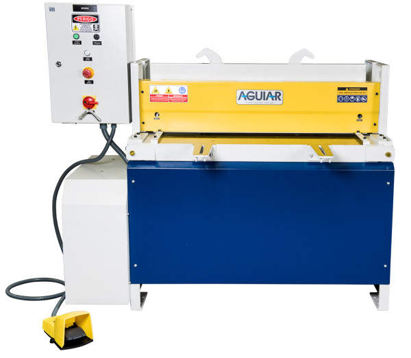 Características Técnicas: As Guilhotinas Eletromecânicas com Ângulo Fixo e Corte Prismático são maquinas industriais para corte de chapas metálicas e vários outros tipos de materiais. Fabricação 100% Nacional; Capacidade de corte em aço SAE 1010 / 1020 (R=420 N/mm²); Sistema de corte prismático com ângulo fixo; Transmissão por acoplamento mecânico de redutor de velocidade; Equipamento simples e de fácil manutenção; 2 modos de operação: ciclo normal e ciclo contínuo; Disposição do prensa-chapas mecânico paralelo ao plano de corte; Fácil visualização da linha de corte; Avanço pulsante para regulagem da folga entre facas; Braços de apoio frontal; Jogo de facas (superior/inferior) Standard com tratamento térmico e dois gumes de corte cada uma; Console do pedal de acionamento móvel com cabo flexível; Painel elétrico em caixa blindada IP-54; Segurança: Todas as máquinas AGUIAR são fabricadas de acordo com as atuais normas de segurança (NR-12). Antes do fechamento do negócio, porém o cliente deverá consultar a CIPA ou Técnico de Segurança de sua empresa sobre eventuais modificações nos itens de segurança dedicados ao seu processo de trabalho. Após a fabricação, eventuais adequações deverão ser providenciadas pelo cliente, às suas expensas. Modelos, comprimentos e capacidades: - AGM 1001 (1050 mm x 1,20 mm) - AGM 1301 (1300 mm x 1,20 mm) - AGM 2001 (2050 mm x 1,20 mm) - AGM 1002 (1050 mm x 2,00 mm) - AGM 1302 (1300 mm x 2,00 mm) - AGM 2002 (2050 mm x 2,00 mm) - AGM 3002 (3050 mm x 2,00 mm) - AGM 4002 (4050 mm x 2,00 mm) - AGM 1303 (1300 mm x 3,20 mm) - AGM 2003 (2050 mm x 3,20 mm) - AGM 3003 (3050 mm x 3,20 mm) - AGM 1304 (1300 mm x 4,00 mm) - AGM 2004 (2050 mm x 4,00 mm)