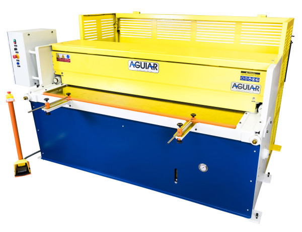 Características Técnicas: As Guilhotinas Eletromecânicas com Ângulo Fixo e Corte Prismático são maquinas industriais para corte de chapas metálicas e vários outros tipos de materiais. Fabricação 100% Nacional; Capacidade de corte em aço SAE 1010 / 1020 (R=420 N/mm²); Sistema de corte prismático com ângulo fixo; Transmissão por acoplamento mecânico de redutor de velocidade; Equipamento simples e de fácil manutenção; 2 modos de operação: ciclo normal e ciclo contínuo; Disposição do prensa-chapas mecânico paralelo ao plano de corte; Fácil visualização da linha de corte; Avanço pulsante para regulagem da folga entre facas; Braços de apoio frontal; Jogo de facas (superior/inferior) Standard com tratamento térmico e dois gumes de corte cada uma; Console do pedal de acionamento móvel com cabo flexível; Painel elétrico em caixa blindada IP-54; Segurança: Todas as máquinas AGUIAR são fabricadas de acordo com as atuais normas de segurança (NR-12). Antes do fechamento do negócio, porém o cliente deverá consultar a CIPA ou Técnico de Segurança de sua empresa sobre eventuais modificações nos itens de segurança dedicados ao seu processo de trabalho. Após a fabricação, eventuais adequações deverão ser providenciadas pelo cliente, às suas expensas. Modelos, comprimentos e capacidades: - AGM 1001 (1050 mm x 1,20 mm) - AGM 1301 (1300 mm x 1,20 mm) - AGM 2001 (2050 mm x 1,20 mm) - AGM 1002 (1050 mm x 2,00 mm) - AGM 1302 (1300 mm x 2,00 mm) - AGM 2002 (2050 mm x 2,00 mm) - AGM 3002 (3050 mm x 2,00 mm) - AGM 4002 (4050 mm x 2,00 mm) - AGM 1303 (1300 mm x 3,20 mm) - AGM 2003 (2050 mm x 3,20 mm) - AGM 3003 (3050 mm x 3,20 mm) - AGM 1304 (1300 mm x 4,00 mm) - AGM 2004 (2050 mm x 4,00 mm)